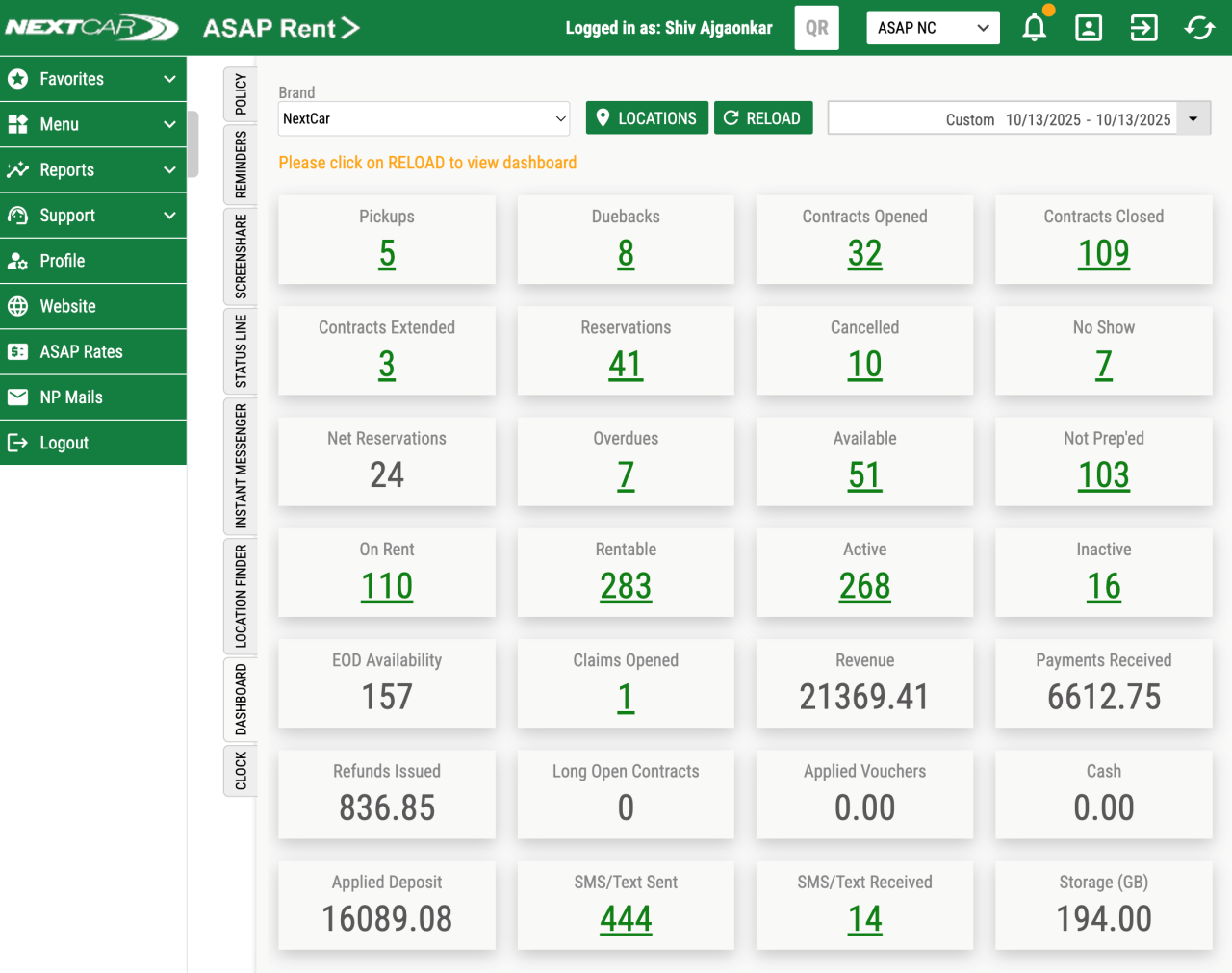 Click on any widget to jump to that set of records. Use the date input to load dashboard stats from prior days to compare to previous.