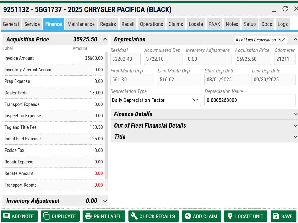 Manage your fleet’s value, from in-fleet to in-use depreciation all the way to sale.